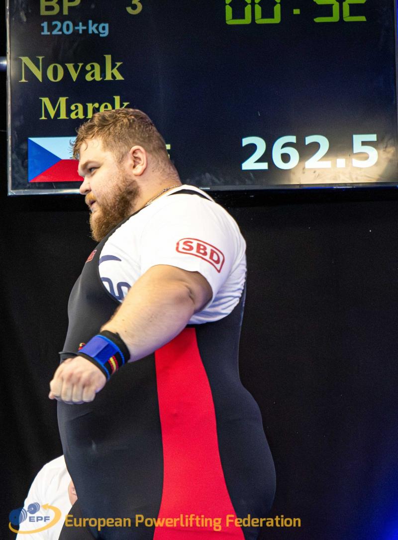 Druhým želízkem v ohni byl Marek Novák. Po jeho famozním výkonu v Africe se očekával boj o titul i nyní. Marek dokázal svůj výkon opět posunout. V kategorii mužů nad 120 kg se pokořenou váhou 262,5 kg stal mistrem Evropy. Jeho benčpres byl opět nejvyšším RAW výkonem v české historii. Marek zároveň dokázal v letošním roce nebývalou věc, a to zisk titulu mistra Evropy i světa v supertěžké váze, a navíc v jedné sezóně.