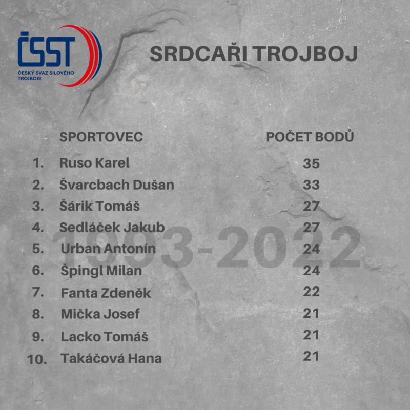 Mrkněte na žebříček srdcařů podle STK za posledních 30 let (součet bodů = počet titulů + počet účastí na MČR open)