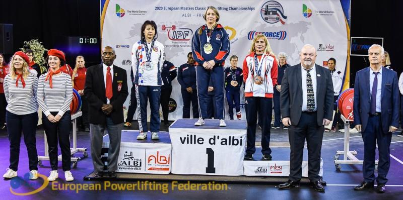 | 2020 | Mistrovství Evropy masters žen v klasickém silovém trojboji | Albi | Masters II | Masters II -57kg | 122.5 | 70.0 | 142.5 | 335.0 | 2. |